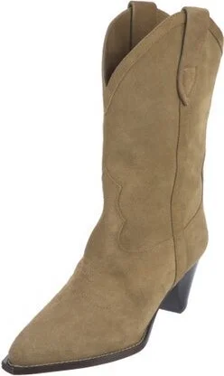 Isabel Marant Suede Mid-Calf Western Boots Brown Leather Trim Pointed-Toes Includes Box & Dust Bag Read more