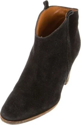 Isabel Marant Suede Ankle Western Boots Black Leather Trim Round-Toes Read more