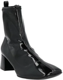 leather, patent-effect, no appliqués, solid color, leather lining, zipper fastening, square toe, square heel, leather sole, contains non-textile parts of animal origin, calf boots , Color: Black Read more