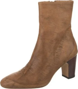 Iro Suede Mid-Calf Boots Brown Leather Trim Square-Toes Concealed Zip Closure at Sides Includes Box & Dust Bag Read more