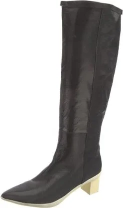 Stuart Weitzman Leather Knee-High Boots Black Pointed-Toes Designer Fit: This designer typically runs true to size. Unfortunately, due to restrictions, this item may not be eligible for shipping in all areas.