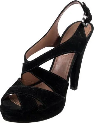 Prada Suede Slingback Sandals Black Platform Crossover Straps Designer Fit: Sandals by Prada typically run a half size small. Read more
