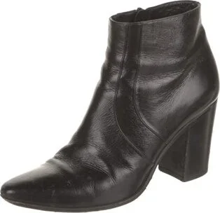 Saint Laurent Leather Ankle Boots Black Semi-Pointed Toes Exposed Zip Closure at Sides Fit: This style typically runs a half size small. Unfortunately, due to restrictions, this item may not be eligible for shipping in all areas.