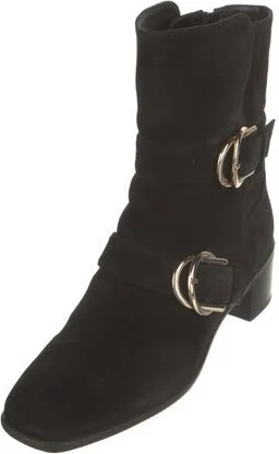 Stuart Weitzman Suede Mid-Calf Moto Boots Black Square-Toes Concealed Zip Closure at Sides Includes Dust Bag Designer Fit: This designer typically runs true to size. Read more