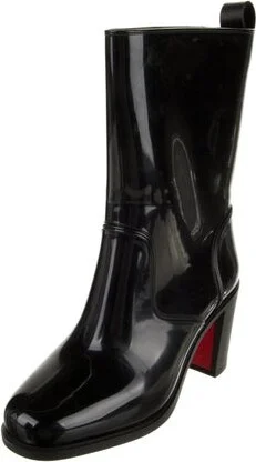 Christian Louboutin Rubber Mid-Calf Rain Boots Black Leather Trim Round-Toes Designer Fit: This style typically runs a full size small. Read more