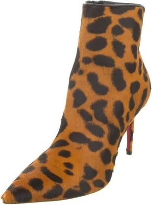 Christian Louboutin Ponyhair Ankle Boots Black Animal Print Leather Trim Pointed-Toes with Leather Trim Embellishment Exposed Zip Closure at Sides Designer Fit: This style typically runs a full size s Read more
