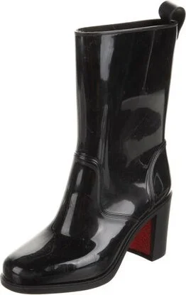 Christian Louboutin Rubber Mid-Calf Rain Boots Black Leather Trim Round-Toes with Leather Trim Embellishment Platform Designer Fit: This style typically runs a full size small. Read more