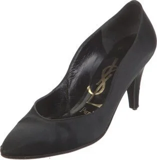 Saint Laurent Satin Pumps Black Semi-Pointed Toes Designer Fit: Pumps by Saint Laurent typically run a half size small. Read more