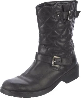 Aquatalia Leather Mid-Calf Moto Boots Black Floral Print Round-Toes Buckle Closure at Sides Fit: Boots by Aquatalia typically run small, consider taking a half size up. Unfortunately, due to restricti Read more