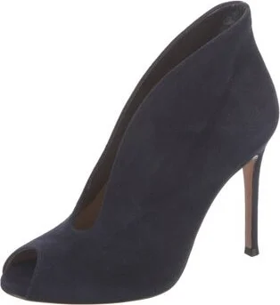 Gianvito Rossi Suede Ankle Boots Blue Leather Trim Peep-Toes Includes Box, Dust Bag & Additional Heel Caps Designer Fit: Boots by Gianvito Rossi typically run a half size small. Read more