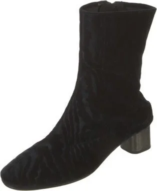 Robert Clergerie Velvet Mid-Calf Sock Boots Blue Leather & Suede Trim Square-Toes Exposed Zip Closure at Sides Designer Fit: Boots by Robert Clergerie typically run a half size small. Read more