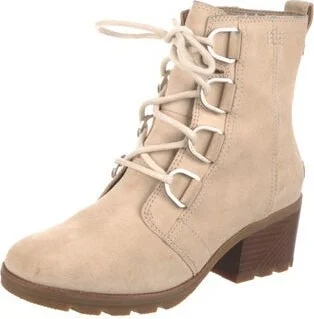 Sorel Suede Mid-Calf Combat Boots Neutrals Round-Toes Lace-Up Closure at Uppers Read more