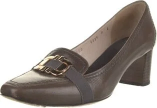 Salvatore Ferragamo Leather Pumps Brown Suede Trim Square-Toes Fit: This style typically runs a half size small. Unfortunately, due to restrictions, this item may not be eligible for shipping in all areas.