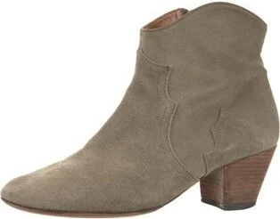 Isabel Marant Suede Ankle Western Boots Grey Square-Toes Concealed Zip Closure at Sides Read more