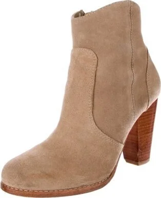 Joie Suede Ankle Western Boots Neutrals Round-Toes with Whipstitch Trim Concealed Zip Closure at Sides
