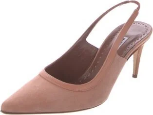 Manolo Blahnik Suede Slingback Pumps Pink Pointed-Toes Includes Box Fit: This style typically runs narrow and a half size small. Read more
