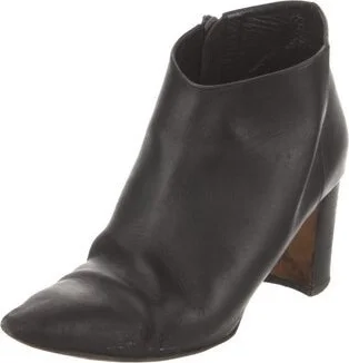 Manolo Blahnik Leather Ankle Boots Black Semi-Pointed Toes Concealed Zip Closure at Sides Designer Fit: This style typically runs a full size small. Unfortunately, due to restrictions, this item may n Read more