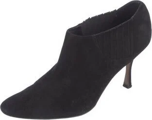 Manolo Blahnik Suede Mules Black Round-Toes Includes Box & Dust Bag Fit: This style typically runs narrow and a half size small. Read more