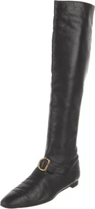 Manolo Blahnik Leather Knee-High Riding Boots Black Semi-Pointed Toes Zip Closures at Shafts Designer Fit: This style typically runs a full size small. Unfortunately, due to restrictions, this item ma Read more