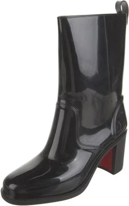 Christian Louboutin Rubber Mid-Calf Rain Boots Black Square-Toes Designer Fit: This style typically runs a full size small. Read more