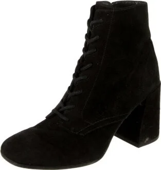 Vince Suede Ankle Lace-Up Boots Black Square-Toes Concealed Zip Closure at Sides Read more