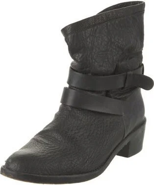 Loeffler Randall Leather Mid-Calf Moto Boots Black Round-Toes Wrap-Around Straps Unfortunately, due to restrictions, this item may not be eligible for shipping in all areas. Read more