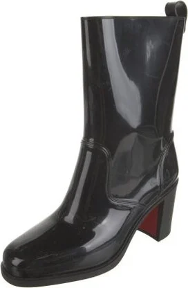 Christian Louboutin Rubber Mid-Calf Rain Boots Black Leather Trim Square-Toes Designer Fit: This style typically runs a full size small. Read more