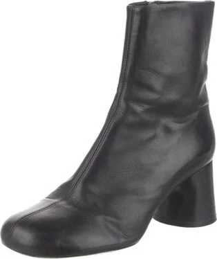 Khaite Leather Ankle Boots Black Square-Toes Concealed Zip Closure at Sides Unfortunately, due to restrictions, this item may not be eligible for shipping in all areas.