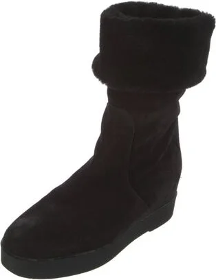 Salvatore Ferragamo Suede Mid-Calf Boots Black Square-Toes Platform Wrap-Around Straps & Concealed Zip Closure at Sides Includes Box Designer Fit: Boots by Salvatore Ferragamo typically run a half siz Read more