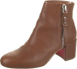 Christian Louboutin Leather Ankle Boots Brown Round-Toes Exposed Zip Closure at Sides Includes Box & Dust Bag Designer Fit: This style typically runs a full size small. Unfortunately, due to restricti Read more