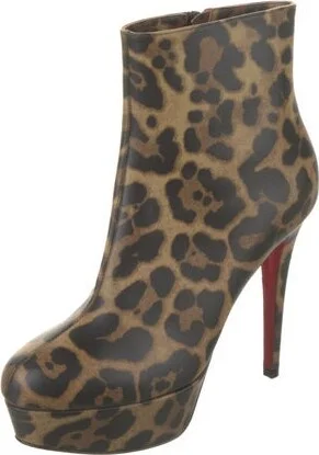 Christian Louboutin Leather Ankle Boots Brown Animal Print Semi-Pointed Toes Platform Exposed Zip Closure at Sides Designer Fit: This style typically runs a full size small. Unfortunately, due to restrictions, this item may not be eligible for shipping in all areas.