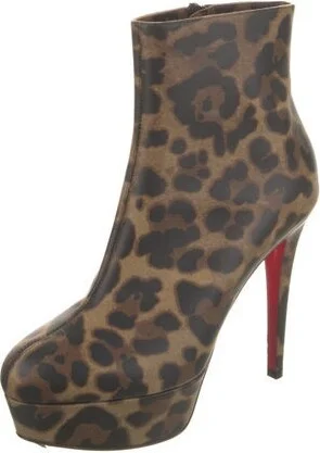 Christian Louboutin Leather Ankle Boots Brown Animal Print Semi-Pointed Toes Platform Exposed Zip Closure at Sides Designer Fit: This style typically runs a full size small. Unfortunately, due to rest Read more