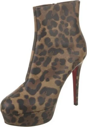 Christian Louboutin Leather Ankle Boots Brown Animal Print Semi-Pointed Toes Platform Exposed Zip Closure at Sides Designer Fit: This style typically runs a full size small. Unfortunately, due to rest Read more