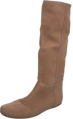 Prada Leather Knee-High Boots Brown Square-Toes Includes Dust Bag Fit: This style typically runs a half size small. Unfortunately, due to restrictions, this item may not be eligible for shipping in all areas.