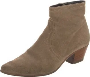 Saint Laurent Suede Ankle Boots Brown Round-Toes Concealed Zip Closure at Sides Fit: This style typically runs a half size small.