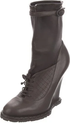 Bottega Veneta Leather Mid-Calf Lace-Up Boots Brown Round-Toes Platform Lace-Up Closure at Uppers Unfortunately, due to restrictions, this item may not be eligible for shipping in all areas. Read more