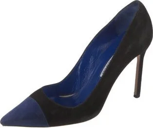 Manolo Blahnik Suede Pumps Black Pointed-Toes Includes Dust Bag Fit: This style typically runs narrow and a half size small.