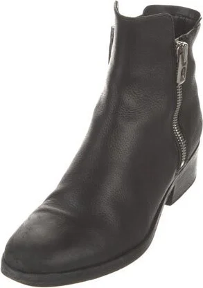 3.1 Phillip Lim Leather Ankle Boots Black Round-Toes Exposed Zip Closure at Sides Designer Fit: This designer typically runs true to size. Unfortunately, due to restrictions, this item may not be elig Read more