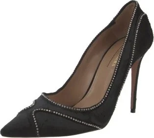 Aquazzura Satin Pumps Black Pointed-Toes with Crystal Embellishments Read more