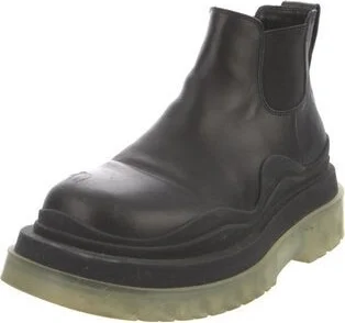 Bottega Veneta Leather Ankle Chelsea Boots Black Rubber Trim Round-Toes Platform Unfortunately, due to restrictions, this item may not be eligible for shipping in all areas. Read more
