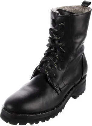 Freda Salvador Leather Mid-Calf Combat Boots Black Round-Toes Unfortunately, due to restrictions, this item may not be eligible for shipping in all areas. Read more