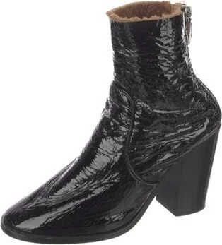 Laurence Dacade Patent Leather Ankle Boots Black Semi-Pointed Toes Zip Closures at Shafts Read more