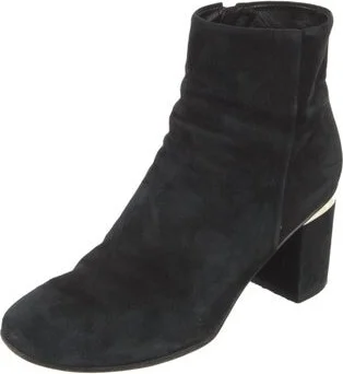 Tory Burch Suede Ankle Boots Black Leather Trim Round-Toes Platform Concealed Zip Closure at Sides Designer Fit: This designer typically runs true to size. Read more