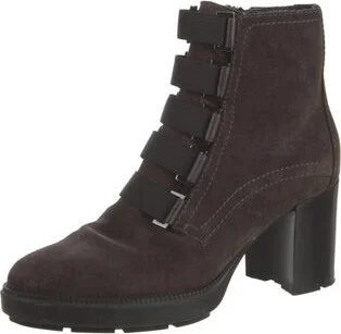 Aquatalia Suede Ankle Combat Boots Brown Round-Toes Platform Exposed Zip Closure at Sides Includes Box Fit: Boots by Aquatalia typically run small, consider taking a half size up. Read more