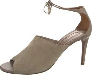 Aquazzura Suede Sandals Neutrals Leather Trim Embellishment Wrap-Around Straps & Tie Closures