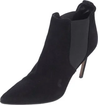 Manolo Blahnik Suede Ankle Chelsea Boots Black Pointed-Toes Designer Fit: This style typically runs a full size small.