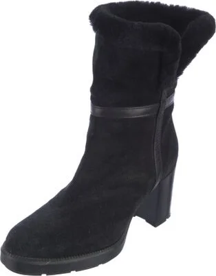 Aquatalia Suede Ankle Boots Black Leather & Fur Accents Round-Toes Platform Fit: Boots by Aquatalia typically run small, consider taking a half size up. Read more