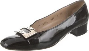 Salvatore Ferragamo Patent Leather Pumps Black Square-Toes Fit: This style typically runs a half size small. Read more