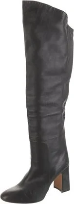 Stuart Weitzman Leather Knee-High Boots Black Semi-Pointed Toes Designer Fit: This designer typically runs true to size. Unfortunately, due to restrictions, this item may not be eligible for shipping Read more