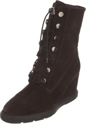 Aquatalia Suede Ankle Lace-Up Boots Brown Round-Toes Platform Exposed Zip Closure at Sides Fit: Boots by Aquatalia typically run small, consider taking a half size up.